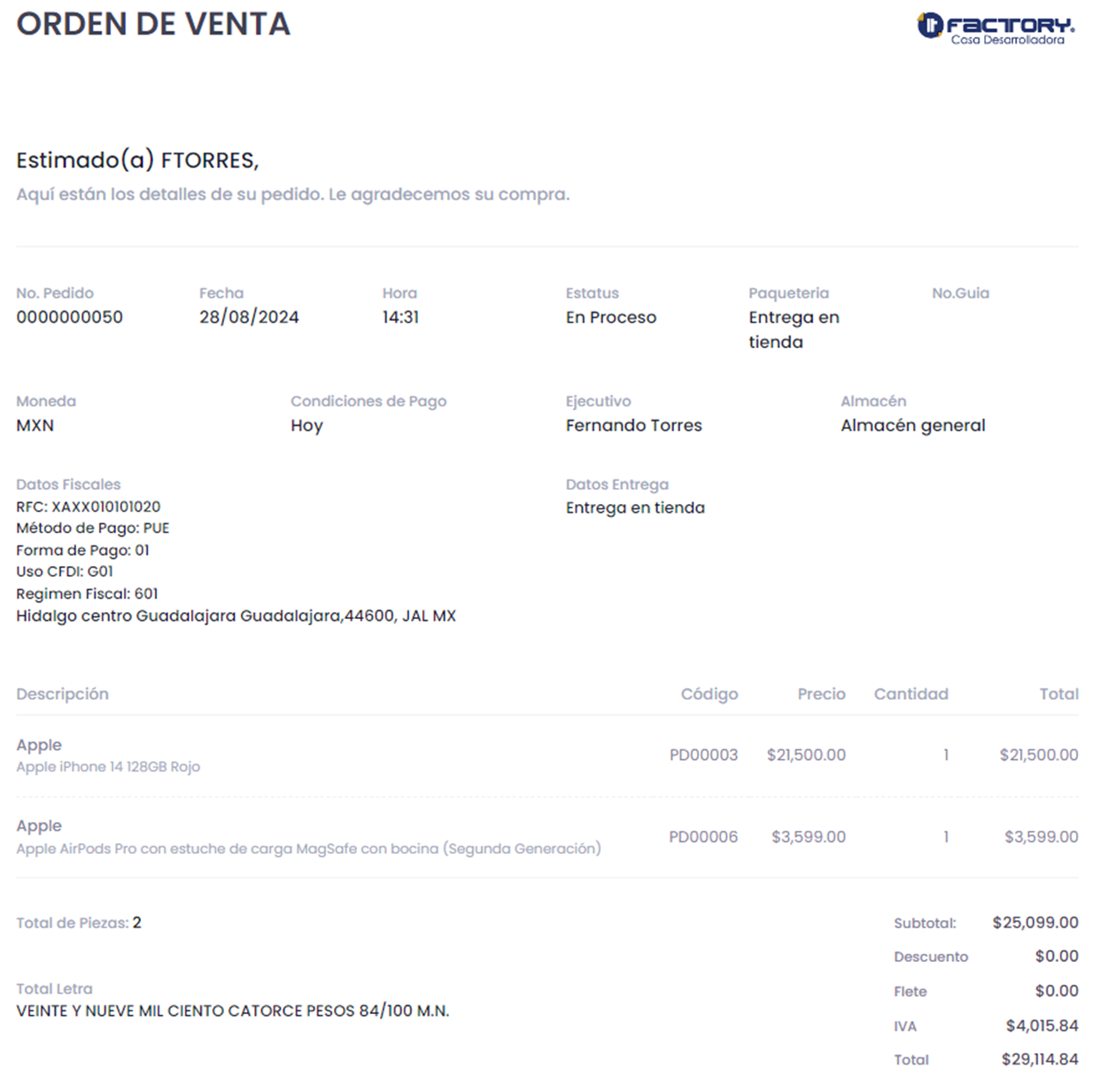 Trazabilidad del flujo de compra.
